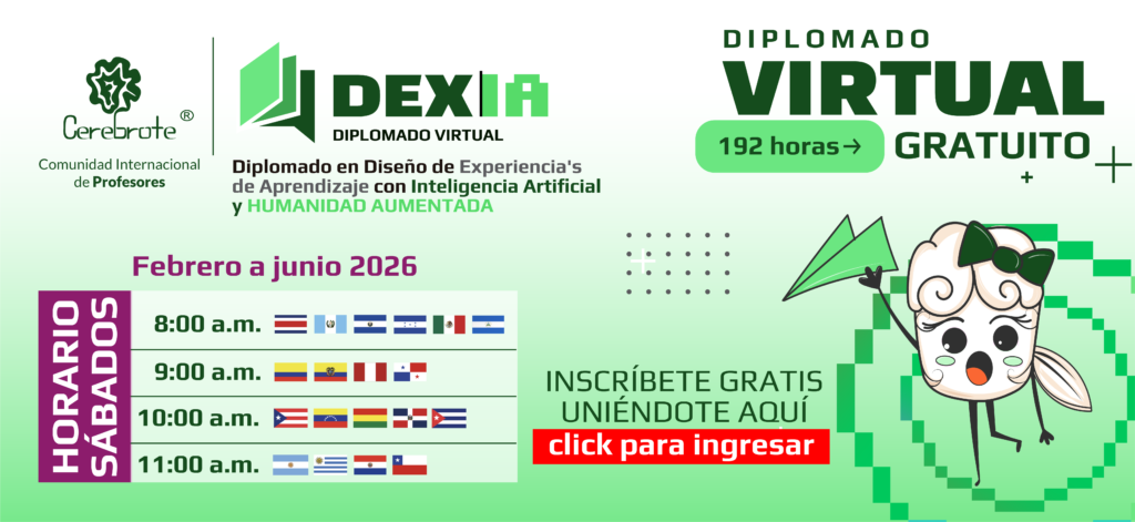DEXIA Diplomado en Diseño de Experiencias de Aprendizaje con Inteligencia Artificial y HUMANIDAD AUMENTADA es un Diplomado virtual gratuito por 192 horas de formación que se llevará a cabo durante los meses de febrero a junio de 2026.